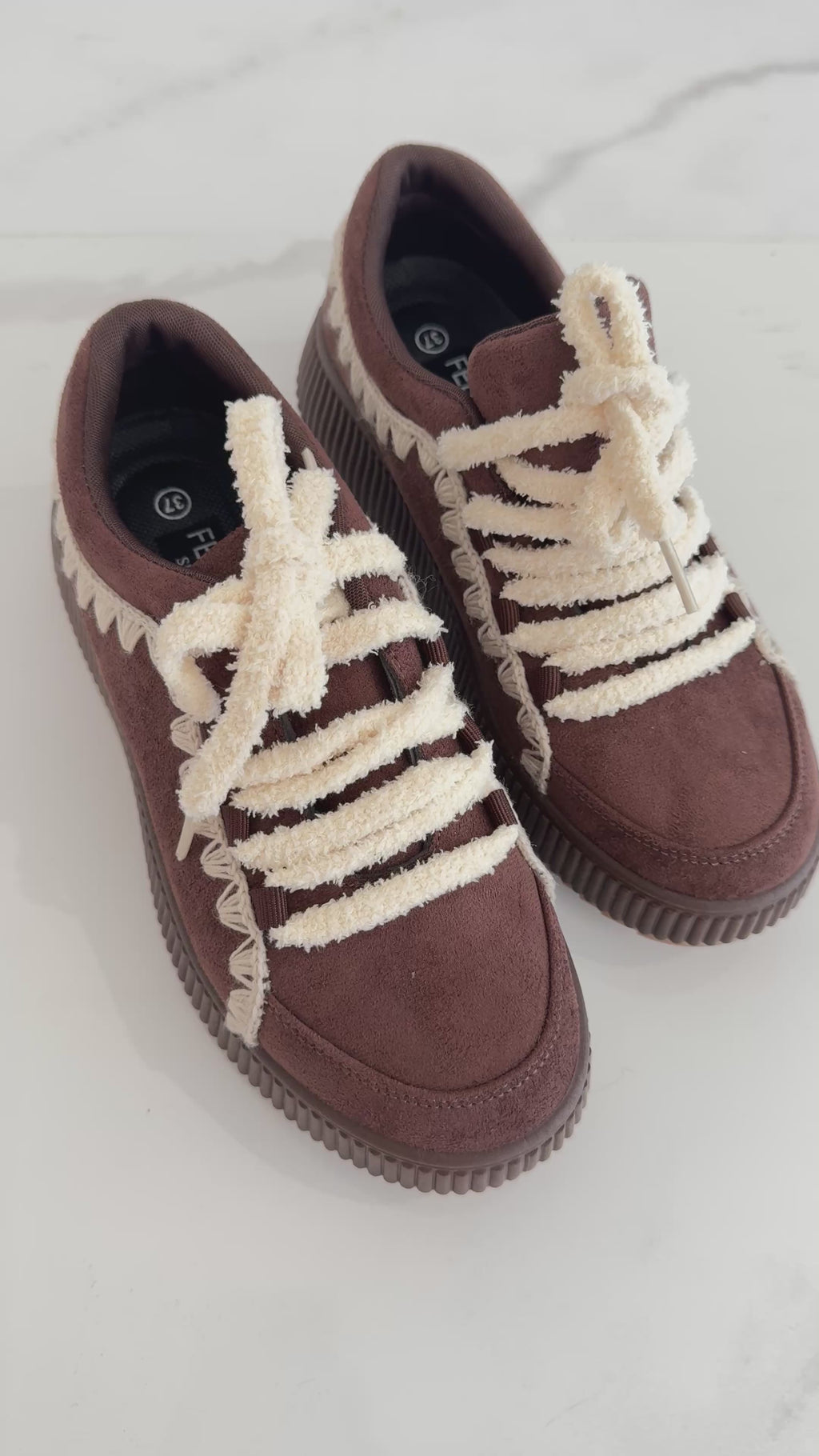 Sneaker in eco suede marrone con para tono su tono e lacci in spugna. Confortevole e comodissima ! Non puoi non averla 😍